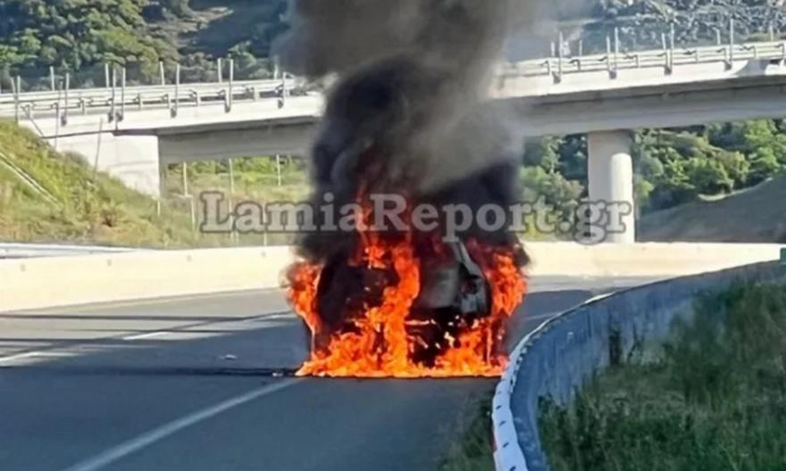 Το ευτύχημα είναι ότι δεν κινδύνευσαν οι επιβάτες του, ούτε κάποιος άλλος διερχόμενος, ενώ η πυρκαγιά περιορίστηκε στο όχημα.