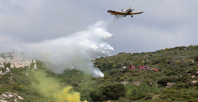 Η φωτιά καίει ξερά χόρτα και χαμηλή βλάστηση και σύμφωνα με την Πυροσβεστική δεν απειλεί άμεσα κατοικημένες ζώνες.