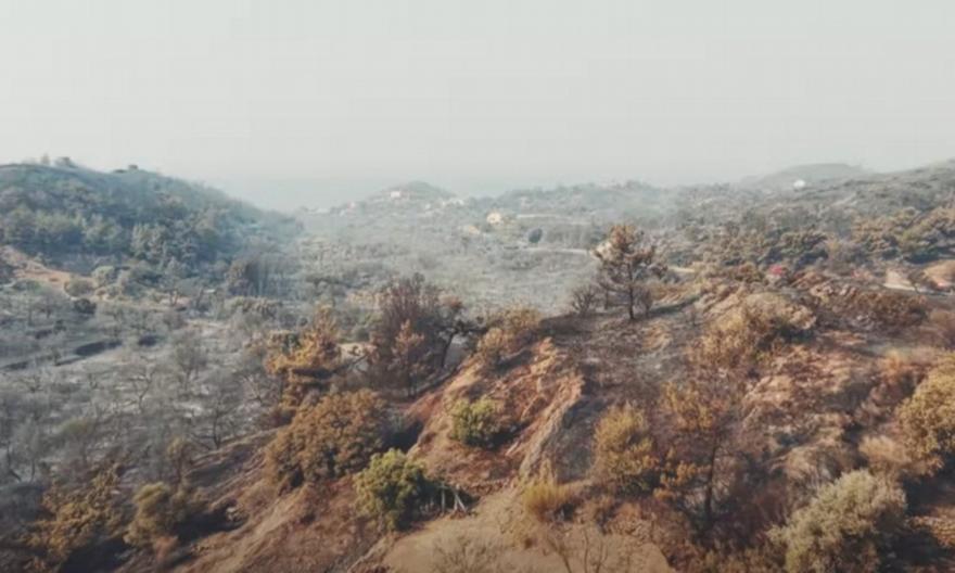 Την ίδια ώρα, πλάνα από drone καταγράφουν τις καμένες εκτάσεις στη Βολισσό και στα Λιμνιά Χίου. Το βίντεο του politischios αποτυπώνει την τεράστια οικολογική καταστροφή που προκάλεσε η φωτιά, η οποία κατέστρεψε δασικές εκτάσεις, περιουσίες και τοπία μοναδικής φυσικής ομορφιάς.