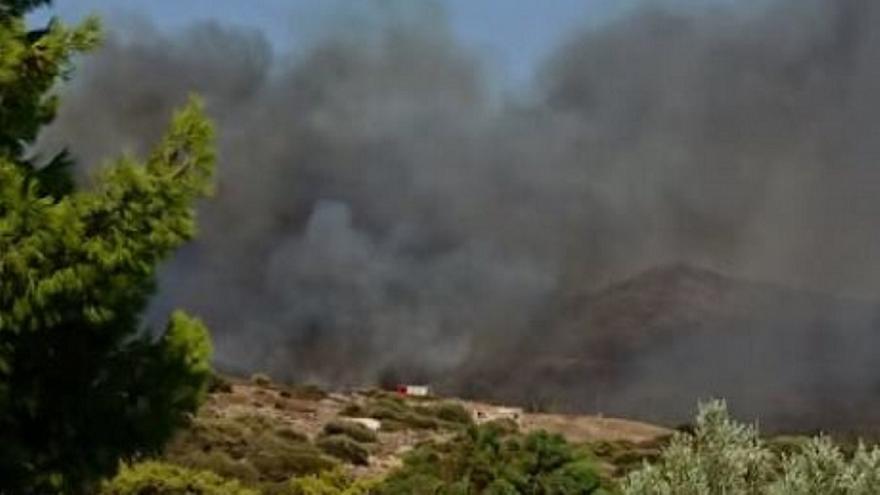 Φωτιά σε θαμνώδη έκταση σε λόφο πάνω από το Cape Sounio, πάνω από τη λεωφόρο Σουνίου, σύμφωνα με τη Λαυριακή.