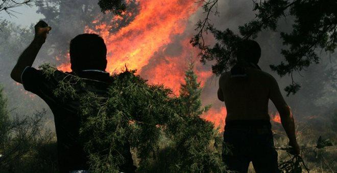 Καίει θαμνώδη έκταση, κυρίως πουρνάρια. Δεν απειλείται πάντως κάποιο οικισμό.