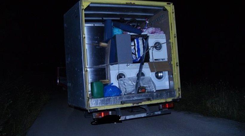 Στα δύο φορτηγά που εγκαταλείφθηκαν οι αστυνομικοί βρήκαν δύο μηχανήματα έργων, γεωργικό μηχάνημα, εξωλέμβια μηχανή τρέιλερ, καθώς και πλήθος οικιακών συσκευών.