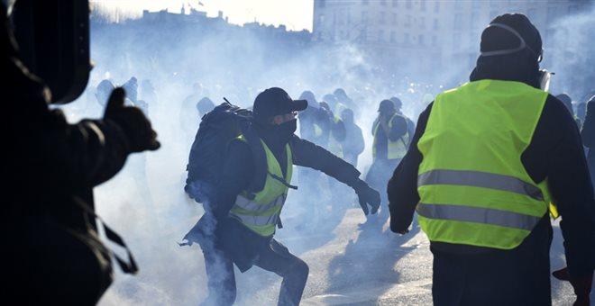 Η γαλλική αστυνομία προχώρησε σε ρίψεις δακρυγόνων για να διαλύσει το πλήθος των διαδηλωτών, που πέταγαν εναντίον των μελών των υπηρεσιών ασφαλείας αντικείμενα, ενώ έβαλαν σήμερα φωτιά και σε κάδους απορριμμάτων στο Παρίσι, τη Λιόν και το Μπορντό, στα επεισόδια που ξέσπασαν κατά τη διάρκεια των κινητοποιήσεων των κίτρινων γιλέκων, για 14ο συνεχόμενο Σαββατοκύριακο.