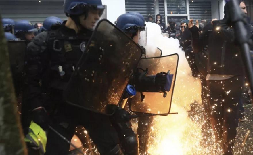 NOW - Severe clashes in Paris, police hit by firebombs.pic.twitter.com/xxW0Mtedih