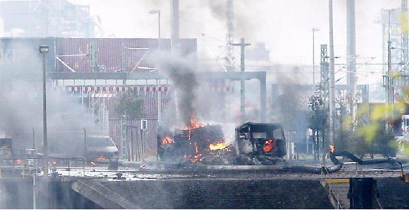 Πλάνα που μεταδόθηκαν από τοπικά ΜΜΕ δείχνουν φλόγες και μια στήλη πυκνού μαύρου καπνού να υψώνονται από το λιμάνι της εγκατάστασης, έναν τερματικό για ρευστά καύσιμα όπως ορυκτή νάφθα και μεθανόλη, που είναι σημαντικά για τον εφοδιασμό της BASF με πρώτες ύλες.