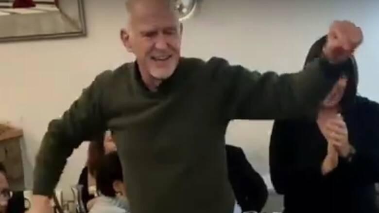 Στο άκουσμα του τραγουδιού «Συννεφιασμένη Κυριακή», που ταίριαζε γάντι στην περίπτωσή του, σηκώθηκε και χόρεψε το αγαπημένο ζεϊμπέκικο του πατέρα του, υπό το βλέμμα της Ολλανδής συντρόφου του. Μάλιστα ανέβασε το βίντεο στα social media δείχνοντας πως ήδη έχει αφήσει πίσω του την ήττα από τον Νίκο Ανδρουλάκη.