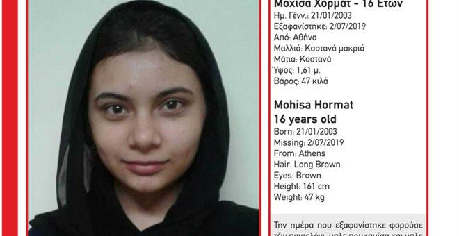 Η 16χρονη Μοχίσα Χορμάτ, αφγανικής καταγωγής, εξαφανίστηκε στις 2-7-2019, απογευματινές ώρες, από την περιοχή της Αθήνας.