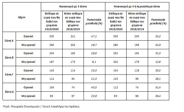 Επιπλέον, φέτος για πρώτη φορά, θα λάβουν πρόσθετο επίδομα οι ορεινοί Δήμοι της Α΄ Ζώνης, που αντιμετωπίζονταν ως πεδινοί μέχρι τώρα.