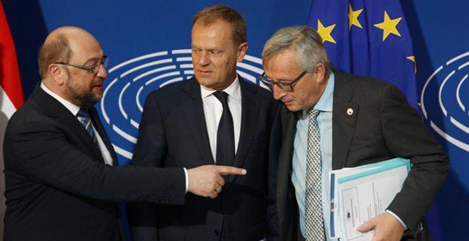 Η Ευρωπαϊκή Ένωση των 27 κρατών-μελών, χωρίς τη Βρετανία, θα συνεχίσει να υπάρχει, παρά τη νίκη του Brexit στο δημοψήφισμα, διαμήνυσαν οι θεσμικοί αρχηγοί της Ε.Ε.