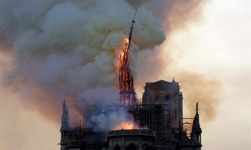 Σύμφωνα με τις πρώτες πληροφορίες που μεταδίδουν τα γαλλικά ΜΜΕ, η φωτιά άρχισε στο σημείο που πραγματοποιούνται τα έργα συντήρησης του ναού και ήδη έχει καταρρεύσει το καμπαναριό.