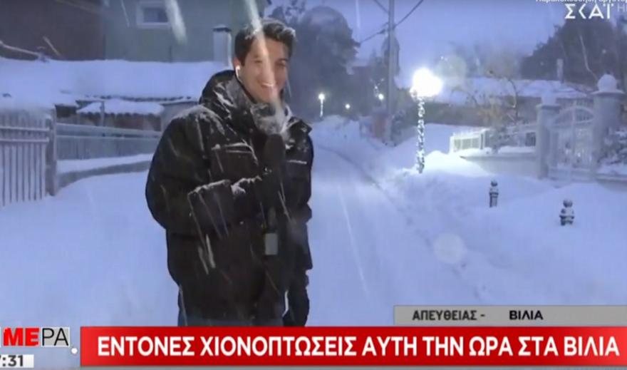 Εντονη είναι χιονόπτωση στα Βίλια, αυτή την ώρα.