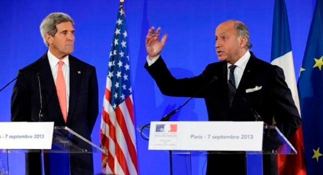 Σε συνέντευξη Τύπου που παραχώρησε στο Παρίσι με τον γάλλο ομόλογό του Λοράν Φαμπιούς, ο Κέρι δήλωσε «ενθαρρυμένος» από την «πολύ δυνατή» δήλωση που έκαναν τα «28» κράτη μέλη της ΕΕ κατά της Συρίας, χωρίς ωστόσο οι Ευρωπαίοι να υποστηρίζουν τα στρατιωτικά πλήγματα κατά του καθεστώτος της Δαμασκού.