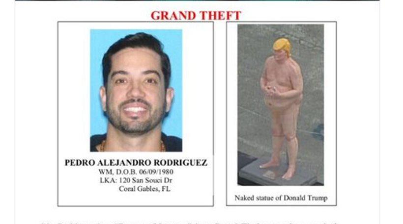 Η είδηση είχε προκαλέσει έκπληξη, αλλά και ποικίλα σχόλια. Ωστόσο, ο δράστης παρέμενε άφαντος, μέχρι σήμερα. Όπως ανακοίνωσε η αστυνομία της Φλόριντα, ο 36χρονος Πέδρο Ροντρίγκεζ, ο οποίος είχε «κλέψει» το γυμνό ομοίωμα του Ντόναλντ Τραμπ, συνελήφθη, δύο ημέρες με το... έγκλημα που διέπραξε.