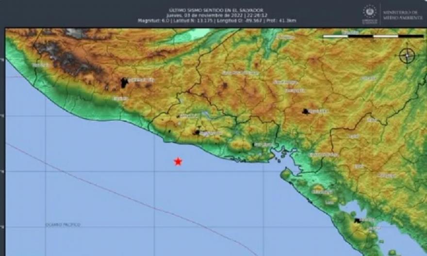 ?? #ElObservatorioInforma DATOS FINALES: Sismo mag. 6.0, frente a la Costa de La Libertad. A 37.0 km al sur de Playa Mizata. Prof. 41 km. [2022-11-03, 22:26:12]. ACTUALIZACION: No existe amenaza de tsunami para El Salvador. pic.twitter.com/zNa78fd72G