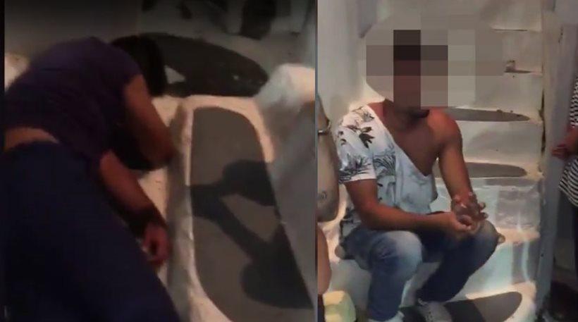 Αυτόπτες μάρτυρες κατέγραψαν με τα κινητά τους το επεισόδιο. Ο ένας ύποπτος βρίσκεται ξαπλωμένος στο έδαφος, ενώ ο φίλος του κάθεται στα σκαλοπάτια με σκισμένη τη μπλούζα από τη συμπλοκή. Πρόκειται για εκείνο που «προσποιήθηκε τον τουρίστα με καπέλο Μύκονος, έτρεξε, τον πιάσαμε και τον κρατάμε και αυτόν για εξακρίβωση στοιχείων», όπως ακούγεται σε ένα από τα βίντεο να λέει ο πρόεδρος του δημοτικού συμβουλίου.