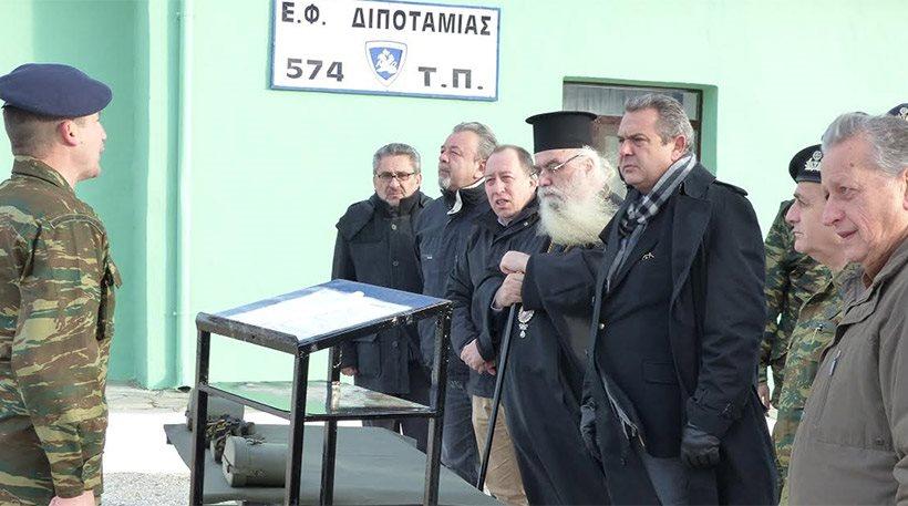 Νωρίτερα το πρωί ο υπουργός Εθνικής Άμυνας, συνοδευμένος από τον αρχηγό του ΓΕΣ, αντιστράτηγο Βασίλη Τελλίδη, τον διοικητή του Γ' Σώματος Στρατού, αντιστράτηγο Αλκιβιάδη Στεφανή και τον ταξίαρχο διοικητή της 9ης ταξιαρχίας, Προκόπη Καρατζέτζο, επισκέφθηκε με ελικόπτερο το ακριτικό φυλάκιο της Διποταμιάς στην Καστοριά και της Κρυσταλλοπηγής στη Φλώρινα, που βρίσκονται κατά μήκος των ελληνοαλβανικών συνόρων.