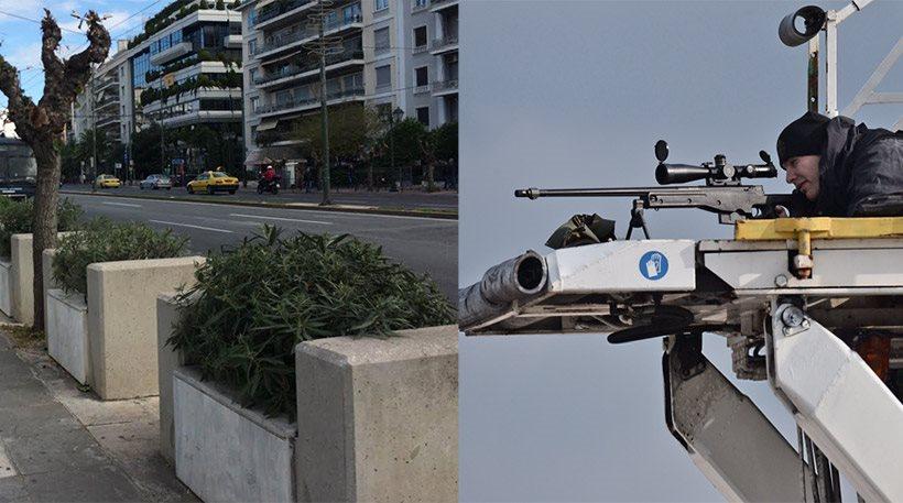 Ολίγον σουρεάλ, ακόμη και για τα ελληνικά δεδομένα, ήταν το σκηνικό κατά την προσγείωση του Μπαράκ Ομπάμα στο αεροδρόμιο «Ελευθέριος Βενιζέλος». Πρωταγωνιστές ήταν, βεβαίως, οι ένοπλοι: Οι «διακοσμητικοί» του ελληνικού τιμητικού αγήματος των τριών όπλων με τις λόγχες προσαρμοσμένες και απαστράπτουσες στα τυφέκιά τους, οι «ορατοί», δηλαδή οι άντρες των ελληνικών και αμερικανικών υπηρεσιών ασφαλείας, αλλά και οι «αόρατοι». Οι τελευταίοι είναι ελεύθεροι σκοπευτές που είχαν αναπτυχθεί στο αεροδρόμιο και κάλυπταν πλήρως το χώρο γύρω από το προβλεπόμενο σημείο στάθμευσης του Air Force One.