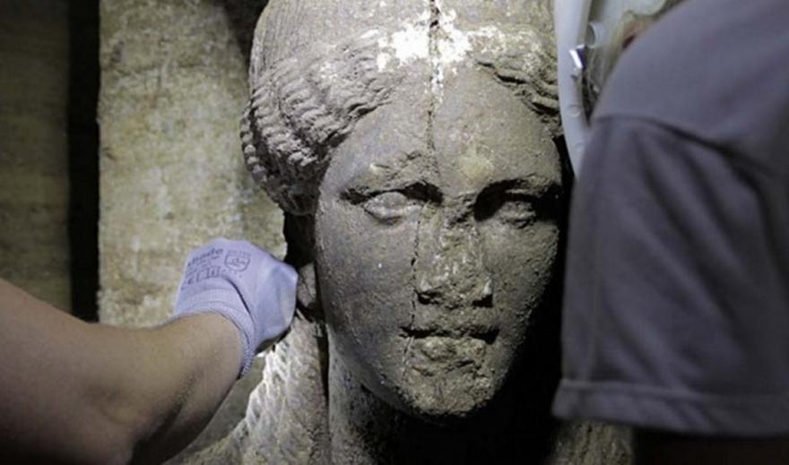 Ως προς τον γλυπτό διάκοσμο (Σφίγγες, Καρυάτιδες...), η μελέτη προβλέπει αποκατάσταση των φτερών των Σφιγγών με το αυθεντικό υλικό που έχει βρεθεί στον χώρο, καθώς και την επανατοποθέτηση της μαρμάρινης κεφαλής της ανατολικής Σφίγγας. Όσον αφορά στις Καρυάτιδες οι οποίες, σύμφωνα με τον αρχιτέκτονα-μελετητή, κατασκευάστηκαν επιτόπου, προτάθηκε η ανάταξη μέρους του επιστηλίου ώστε να γίνει εφικτή η αποκατάσταση του πόλου και μέρους του κεφαλιού που λείπει από μία.