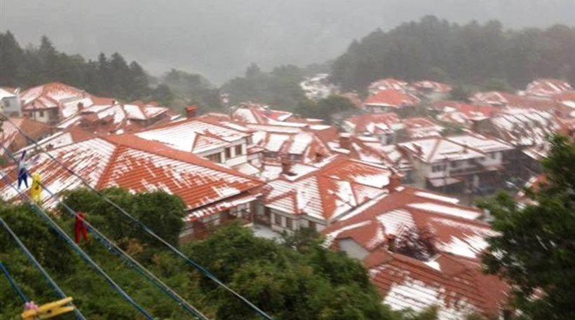 Σε κρανίου τόπο μετατράπηκε το Μέτσοβο, από την πρωτοφανή καταιγίδα και την έντονη χαλαζόπτωση που ξέσπασε.