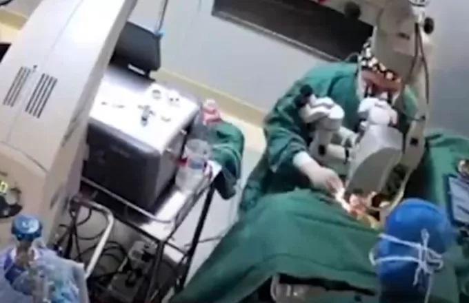 Στο βίντεο φαίνεται ο χειρούργος να χτυπάει με γροθιές στο κεφάλι έναν ασθενή τουλάχιστον τρεις φορές ενώ πραγματοποιεί εγχείριση στα μάτια.