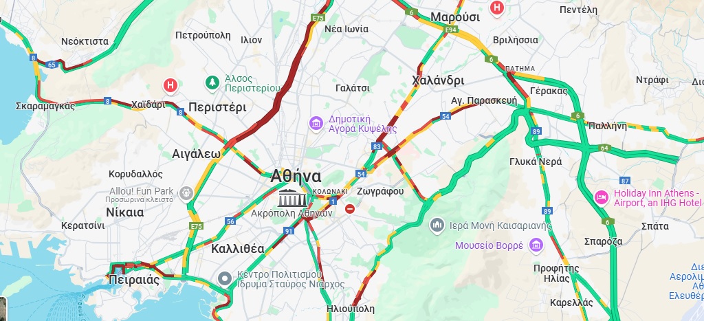 Πολύ μεγάλα κυκλοφοριακά προβλήματα παρατηρούνται αυτή την ώρα σε πολλούς δρόμους του λεκανοπεδίου.
