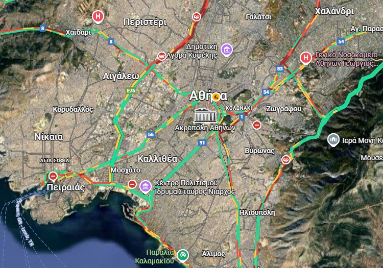 Επιπλέον καθυστερήσεις σημειώνονται και στην άνοδο της Κηφισού, από το ύψος των ΚΤΕΛ έως τη Νέα Χαλκηδόνα, καθώς και στην περιοχή του Σκαραμαγκά. Αντίστοιχα, καθυστερήσεις παρατηρούνται ανά τμήματα στην κάθοδο της Κηφισίας και στην ανηφόρα της λεωφόρου Κατεχάκη από την Ηλιούπολη προς τον Βύρωνα, όπου η κίνηση εξελίσσεται ιδιαίτερα αργά.