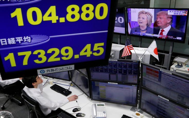 Το δολάριο έπεσε στα 101,46 γεν όταν αναφέρθηκε το ενδεχόμενο να κερδίσει ο Τραμπ την Πολιτεία κλειδί της Φλόριντα, έναντι 105,47 γεν μερικά λεπτά νωρίτερα. Το ευρώ ανέβηκε στο 1,1222 δολάριο, έναντι 1,0989 προηγουμένως.