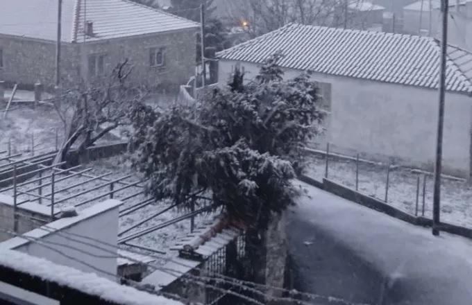 Λευκές εικόνες και στον Παραπόταμο του δήμου Τεμπών, λίγα μόλις χιλιόμετρα από τη Λάρισα.