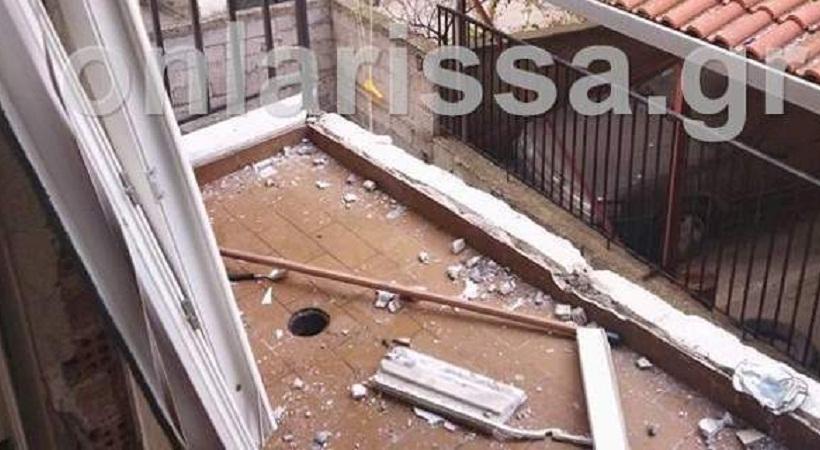 Όπως αναφέρει το onlarissa, από την ένταση της έκρηξης που μάλλον προκλήθηκε από έκρηξη φούρνου μικροκυμάτων, ξηλώθηκαν κουφώματα, καθώς και το σιδερένιο κιγκλίδωμα του μπαλκονιού.