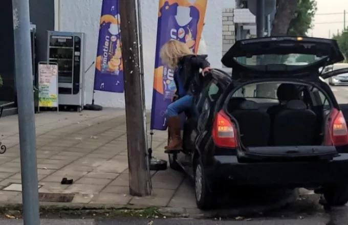 Στην προσπάθειά της να φύγει τράκαρε σε ένα δέντρο αλλά συνέχισε το σόου της.