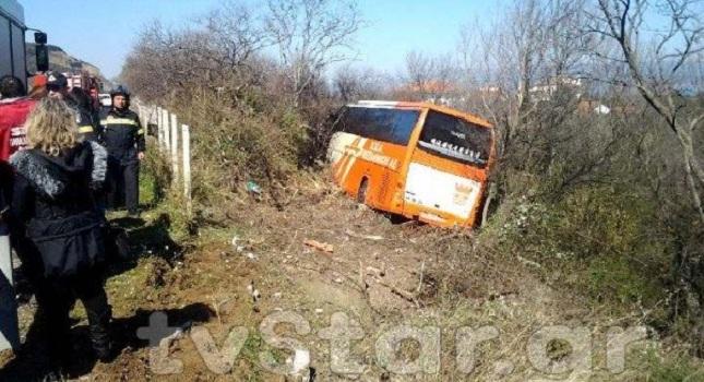 Το λεωφορείο των ΚΤΕΛ Θεσσαλονίκης εξετράπη της πορείας του και ανετράπη.