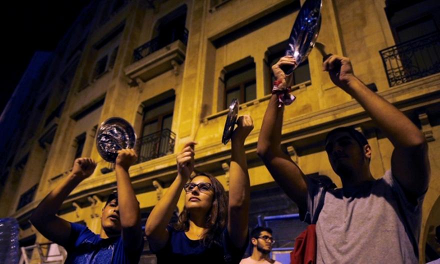 Χθες το βράδυ πολίτες είχαν βγει στα μπαλκόνια τους και χτυπούσαν κατσαρόλες και τηγάνια, ενώ τραγουδούσαν «Ο Θεός ευλογεί τον Λίβανο».