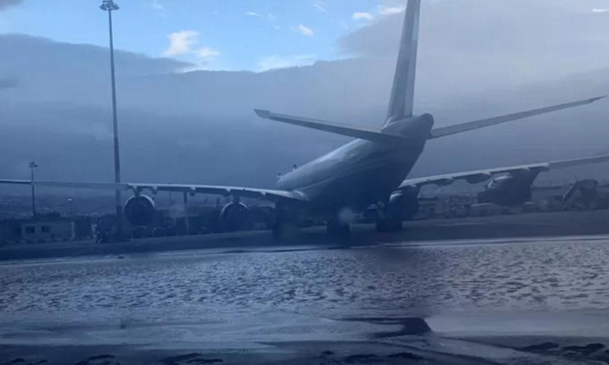 Σε λίμνη μετατράπηκε ο χώρος στάθμευσης στο αεροδρόμιο «Μακεδονία» στη Θεσσαλονίκη λόγω των ισχυρών βροχοπτώσεων που προκάλεσε η κακοκαιρία «Bora».