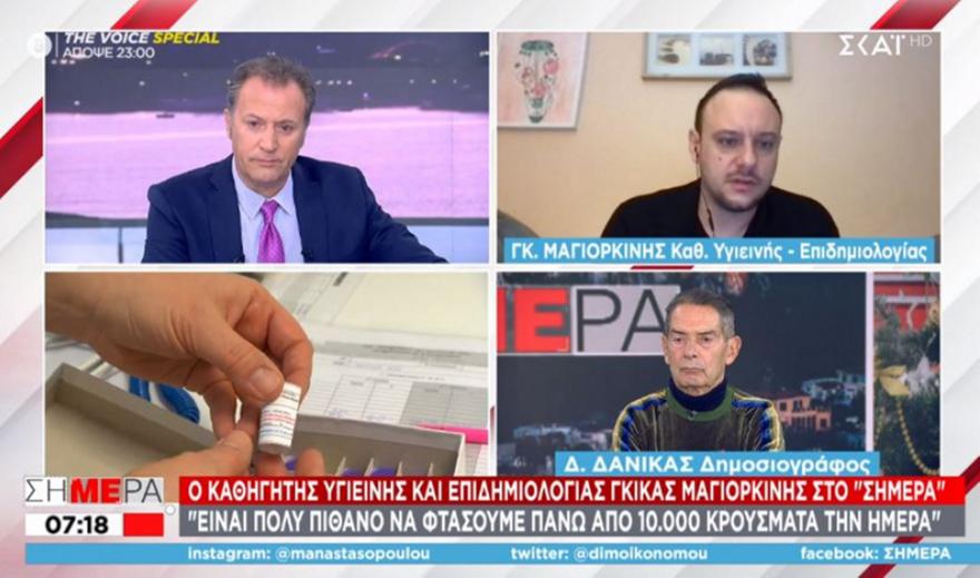 Για κατακόρυφη αύξηση των κρουσμάτων μετά τις γιορτές λόγω της παραλλαγής Όμικρον έκανε λόγο ο καθηγητής-επιδημιολόγος Γκίκας Μαγιορκίνης μιλώντας στην τηλεόραση του ΣΚΑΪ και την εκπομπή «Σήμερα».