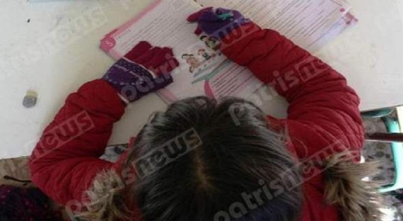 Χθες, μη αντέχοντας το τσουχτερό κρύο μέσα στην τάξη, οι εκπαιδευτικοί με την παρότρυνση και των γονέων, έβγαλαν τα παιδιά στο προαύλιο για να…ζεσταθούν.