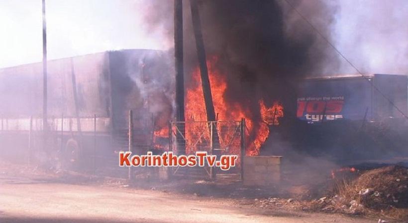 Πυρκαγιά ξέσπασε το μεσημέρι του Σαββάτου σε υπαίθριο χώρο μάντρας με παλιά αυτοκίνητα στον Ισθμό της Κορίνθου, με τη φωτιά να προκαλεί σοβαρές ζημιές σε 3 νταλίκες και 3 κοντέϊνερ, ενώ σημειώθηκαν κι άλλες υλικές ζημιές.