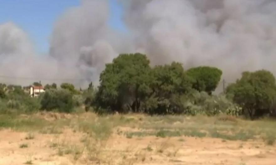 Σύμφωνα με την Πυροσβεστική η φωτιά εκδηλώθηκε γύρω στις 15:02 και κοντά υπάρχουν κατοικίες.