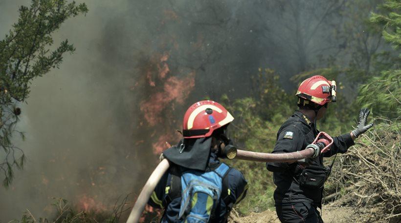 Επί τόπου επιχειρούν δύο καναντέρ και ένα ελικόπτερο, ενώ από εδάφους 27 πυροσβέστες, 12 οχήματα και 12 άτομα πεζοπόρο.