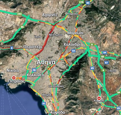 Μεγάλες καθυστερήσεις επίσης σημειώνονται στις λεωφόρους Αθηνών και Σχιστού, στον Σκαραμαγκά, στα δύο ρεύματα της Κηφισίας ανά τμήματα, στη Βουλιαγμένης - Εθνικής Αντιστάσεως στο ύψος της Δάφνης, στον ανοδικό άξονα Αρδηττού - Βασ. Κωνσταντίνου και στην Κατεχάκη - Κανελλοπούλου προς τη Μεσογείων.