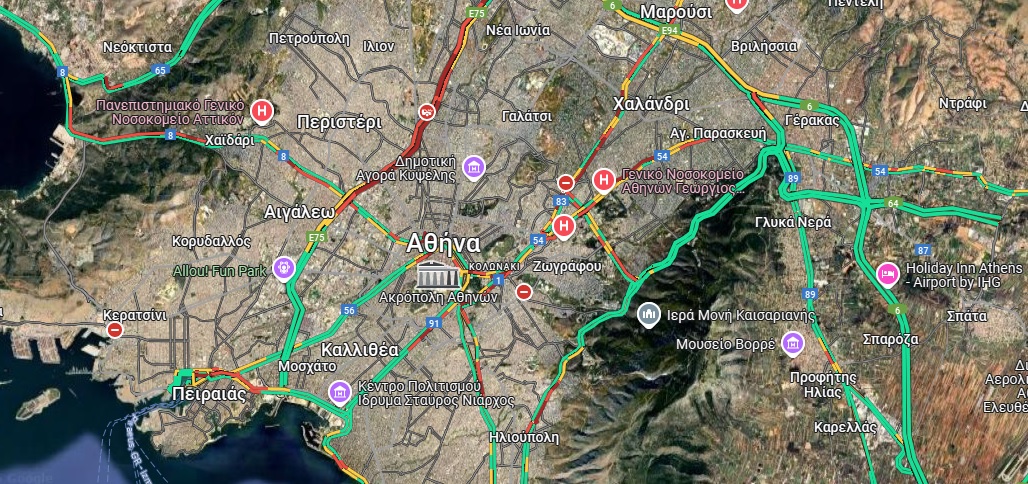 Προβλήματα και στην άνοδο της λεωφόρου Κηφισού από το ύψος της λεωφόρου Αθηνών προς τη Νέα Χαλκηδόνα, στην κάθοδο της λεωφόρου Κηφισού από τη γέφυρα Μεταμόρφωσης προς τα ΚΤΕΛ, στον Σκαραμαγκά, στο ανοδικό ρεύμα της Β. Κωνσταντίνου και στην ανηφόρα της Κατεχάκη από την Ηλιούπολη προς τον Βύρωνα.