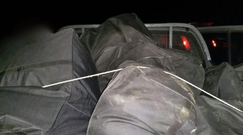Στους σάκους που μετέφεραν βρέθηκαν συσκευασίες ακατέργαστης κάνναβης βάρους 188 κιλών και 256 γραμμαρίων και ένα δέμα με κατεργασμένη κάνναβη βάρους ενός κιλού και 52 γραμμαρίων, τα οποία κατασχέθηκαν μαζί με 520 ευρώ και δύο κινητά που είχαν στην κατοχή τους.
