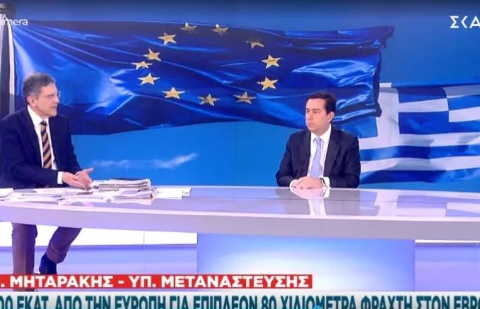 Μιλώντας στην εκπομπή «Καλημέρα» και τον Γιώργο Αυτιά, ο κ. Μηταράκης δήλωσε ότι «ο φράχτης επεκτείνεται και θα επεκταθεί σε όλο το μήκος του» και τόνισε τη σημασία των καλών σχέσεων με τη γείτονα χώρα. «Είναι καλό να διατηρήσουμε μία καλή σχέση με την Τουρκία. Την Τρίτη, μαζί με τον Ν. Παναγιωτόπουλο θα δω τον Χουλουσί Ακάρ και τον Σουλεϊμάν Σοιλού, στο πλαίσιο δημιουργίας γέφυρας συνεργασίας με τη γείτονα», ανέφερε χαρακτηριστικά.