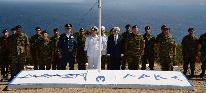 Στη συνέχεια, μιλώντας σε στελέχη των Ενόπλων Δυνάμεων στη Λήμνο, ο πρόεδρος της Δημοκρατίας , το επανέλαβε: «Είστε γενναίοι μαχητές γιατί υπερασπίζεστε την αποστολή σας χωρίς να προκαλείτε κανέναν. Απαντάτε στις προκλήσεις όπως τους αρμόζει με το «Μολών λαβέ»».