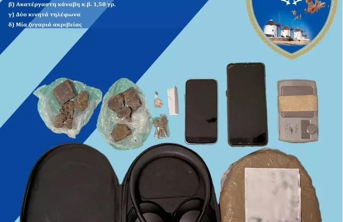 Στη σύλληψη ενός 63χρονου ημεδαπού και ενός 57χρονου αλλοδαπού προέβησαν, χθες το μεσημέρι τα στελέχη του Γραφείου Δίωξης Ναρκωτικών, καθώς και του Κλιμακίου Ειδικών Αποστολών του Λιμεναρχείου Μυκόνου, για παράβαση του νόμου Ν. 4139/13 «περί εξαρτησιογόνων ουσιών», όταν ο 57χρονος εντοπίστηκε να παραλαμβάνει δέμα που περιείχε ναρκωτικές ουσίες, πιθανότατα ηρωίνη βάρους 98,5 γραμμαρίων.