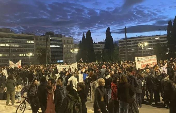 Η συγκέντρωση ξεκίνησε από τα Προπύλαια και ακολούθησε πορεία προς το Σύνταγμα και τη Βουλή.