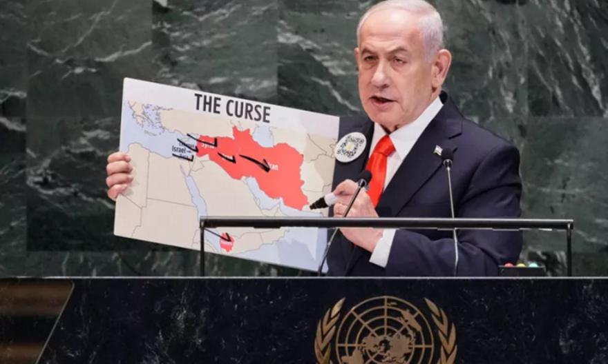 Ο πρωθυπουργός Νετανιάχου μίλησε πρώτος σήμερα Παρασκευή στη Γενική Συνέλευση του ΟΗΕ και οι αρχικές του κουβέντες αφορούσαν στους ομήρους στα μπουντρούμια της Γάζας και στη συνέχεια αναφέρθηκε στις νίκες του Ισραήλ τον τελευταίο χρόνο, κόντρα στους τρομοκράτες στις γειτονικές χώρες του Ισραήλ. Eξήγησε πως περιόρισε το πρόγραμμα του Ιράν για τα πυρηνικά και πως με αυτόν τον τρόπο δεν απομάκρυνε μόνο μία απειλή προς τη χώρα του, αλλά προς όλον τον πλανήτη.