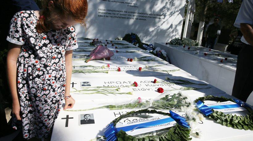 Όπως πρόσθεσε, «εμείς πιστοί και ταπεινοί προσκυνητές βρισκόμαστε για 43η χρονιά για να μνημονεύσουμε αυτούς που όρθωσαν το ανάστημά τους ενάντια στις κάθε λογής συνωμοσίες, που υπερασπίσθηκαν τη δημοκρατική νομιμότητα και την ελευθερία της πατρώας γης, που σημάδεψαν ανεξίτηλα την εποχή τους και ο θάνατός τους, πέραν από το βαρύ πένθος που προκάλεσε, αποτελεί παρακαταθήκη για μελλοντική αξιοποίηση».