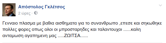 «Γενναίο πλάσμα με βαθιά συναισθήματα για το συνάνθρωπο, έπεσε και σηκώθηκε πολλές φορές όπως όλοι οι μπροστάρηδες και ταλαντούχοι... καλή αντάμωση αγαπημένη μας... Ζωίτσα» έγραψε ο κ. Γκλέτσος.