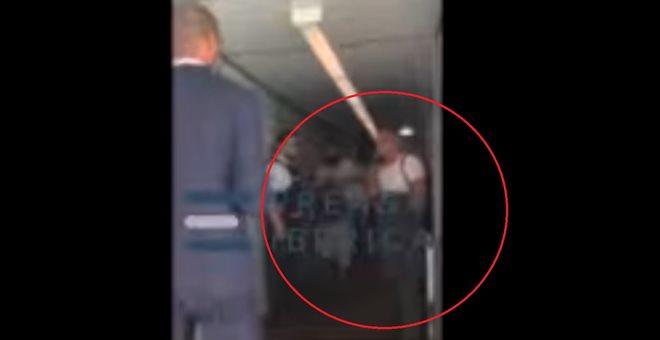 Βίντεο που αναρτήθηκε στον ιστότοπο της ισπανικής εφημερίδας La Nueva Espagna δείχνει τον κ. Βαρουφάκη να ζητεί από τον αστυνομικό στα αγγλικά να μιλήσει με τον προϊστάμενό του. Όπως κατήγγειλε ο πρώην υπουργός «ο αστυνομικός έπιανε πολύ χώρο» και γι’ αυτό τον λόγο τον έσπρωξε. Τελικά ο κ. Βαρουφάκης μπόρεσε να πάρει το διαβατήριό του και να φύγει ελεύθερα.