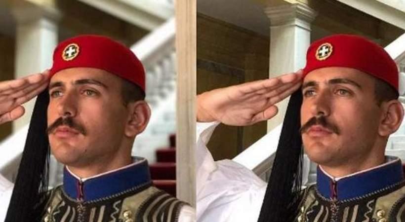 Στην πρώτη απεικονίζεται ένας Εύζωνας στο Προεδρικό Μέγαρο με τον φωτογράφο να "παίζει" με τα εφέ που παρέχει το iPhone, συγκρίνοντας το εφέ του βάθους σε σχέση με τη φυσική απεικόνιση.
